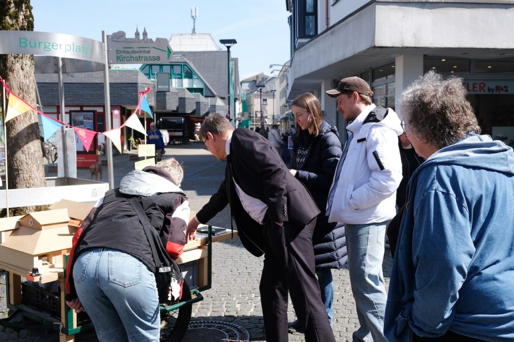 Um noch weitere Stimmen aus Schwelm anzuhören, haben wir uns aus dem direkten Brauerei Bezug auf die Straße gewagt. Wir stellten uns mit dem Modell direkt in die Innenstadt von Schwelm und nutzten es als Gesprächsanlass, um Ideen, Wünsche und Impulse zu sammeln.
